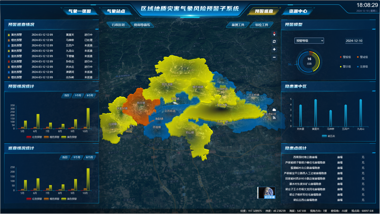 二、建設內容 1 建設思路 圖1 建設思路 本次天津市地質災害風險預警系統(tǒng)建設項目以天津市北部山區(qū)突發(fā)性地質災害風險預警為主體,涵蓋從北部山區(qū)到平原區(qū)再到海岸帶的全部天津市范圍。項目總體建設思路如圖1所示,通過地質災害風險預警數(shù)據(jù)資源體系建設,集成預警模型和軟硬件環(huán)境,基于微服務架構實現(xiàn)系統(tǒng)一體化、數(shù)據(jù)集成化、成果可視化,實現(xiàn)基礎地質環(huán)境信息管理、地質災害自動化監(jiān)測預警、地質災害氣象風險預警、預警產品制作、預警成果發(fā)布、預警模型管理、預警指揮調度等基本預警業(yè)務功能,實現(xiàn)國家、市、區(qū)地質災害預警業(yè)務各層級節(jié)點互聯(lián)互通。項目建成后主要服務于自然資源部、天津市政府、天津市規(guī)劃和自然資源局及各分局、地質災害防治管理部門。 2 主要內容 圖2 系統(tǒng)架構 本項目建設內容如圖2所示,主要包括地質災害數(shù)據(jù)底座和數(shù)據(jù)中臺建設、地質災害預警和分析模型建設、地質災害風險預警應用系統(tǒng)建設、地質災害預警預報保障體系建設和區(qū)域地質災害氣象風險預警監(jiān)測網絡站點建設等。具體內容如下: (1)建設涵蓋地理數(shù)據(jù)、遙感數(shù)據(jù)、地質災害自動化監(jiān)測數(shù)據(jù)、地質災害相關地質環(huán)境數(shù)據(jù)、氣象數(shù)據(jù)、鉆孔數(shù)據(jù)等內容的天津市地質災害風險預警數(shù)據(jù)資源體系,形成一套完整的集數(shù)據(jù)匯集、存儲、查詢、展示、分析應用于一體的數(shù)據(jù)中臺管理系統(tǒng)。 (2)建設天津市北部山區(qū)自動化監(jiān)測預警模型、區(qū)域地質災害氣象風險預警模型,實現(xiàn)地質災害隱患點的基礎模型配置和優(yōu)化機制,實現(xiàn)精細化、智能化的區(qū)域地質災害氣象風險預警智慧中樞;進行韌性城市地質安全分析預測模型的研究,從地面沉降和重大工程地質安全兩個方面深入分析致災孕災的機理,建設支撐韌性城市地質安全的預測分析智慧中樞。 (3)從市-區(qū)兩個層面的應用需求出發(fā)建設天津市地質災害風險預警業(yè)務系統(tǒng),實現(xiàn)地質災害自動化監(jiān)測預警、區(qū)域地質災害氣象風險預警、地質災害指揮調度、地質災害調查評價、地質災害數(shù)據(jù)質量評價、韌性城市地質安全分析預測等系統(tǒng)業(yè)務功能;實現(xiàn)一個平臺不同層級系統(tǒng)使用權限的用戶管理系統(tǒng);實現(xiàn)地質災害相關項目管理系統(tǒng);實現(xiàn)系統(tǒng)移動端建設。 (4)建設支撐地質災害風險預警預測數(shù)據(jù)資源體系、地質災害數(shù)據(jù)中臺和業(yè)務系統(tǒng)、地質災害預警預測模型計算分析的軟硬件、地質災害數(shù)據(jù)中心機房環(huán)境、預警會商等保障體系和制度機制。 (5)建設包括15個氣象雨量站和8個土壤含水率站的區(qū)域地質災害氣象風險預警相關監(jiān)測站點,實現(xiàn)精細化的區(qū)域地質災害氣象風險預警業(yè)務功能。 3 典型應用場景 3.1 區(qū)域地質災害氣象風險預警 建設區(qū)域地質災害氣象風險預測子系統(tǒng),通過地質災害區(qū)域氣象風險預警數(shù)據(jù)一體化管理、預警模型配置、預警計算與成果編輯,實現(xiàn)預警成果生成和發(fā)布。預警發(fā)布支持自動臨災叫應,并可結合隱患點預警成果進行點面雙控的預警成果分析和編輯,形成最終預警產品,并聯(lián)合多部門進行預警會商、預警簽批等,發(fā)布最終預警成果。 圖3 區(qū)域地質災害氣象風險預測子系統(tǒng) 3.2 地質災害自動化監(jiān)測預警 建設地質災害自動化監(jiān)測預警子系統(tǒng),實現(xiàn)對設備與監(jiān)測點的一體化管理、對監(jiān)測數(shù)據(jù)全面、實時的展示與預警。同時,集成單點預警模型,結合監(jiān)測點情況自定義設置閾值,建立“一點一模型”,形成基于隱患點的監(jiān)測預警功能。系統(tǒng)實現(xiàn)了群測群防初步預警、隱患點自動化監(jiān)測預警及區(qū)域風險預警多種渠道預警方式與預警成果,支持動態(tài)更新區(qū)域風險預警,實現(xiàn)點面展示、預警處置聯(lián)動,為防災減災提供數(shù)據(jù)服務支撐。 圖4 地質災害自動化監(jiān)測預警子系統(tǒng) 3.3 地質災害應急指揮調度 建設地質災害指揮調度子系統(tǒng),融合基礎地理數(shù)據(jù)、地質災害數(shù)據(jù)、業(yè)務數(shù)據(jù)等,實現(xiàn)對地質災害相關信息的一張圖展示、災情信息管理,臨災及突發(fā)狀況時可與一線人員實現(xiàn)實時視頻通訊,可進行調度指揮、搬遷避讓、應急值守、風險管控、桌面推演、任務派發(fā)等業(yè)務的集中管理,并提供會商與災情模擬功能,輔助相關部門進行指揮決策,為突發(fā)地質災害事件會商研判、指揮調度和應急決策提供系統(tǒng)支撐,滿足汛期地質災害防御需求。 圖5 地質災害指揮調度子系統(tǒng) 3.4 地質災害風險預警時空數(shù)據(jù)管理 建設地質災害數(shù)據(jù)中臺,利用時空大數(shù)據(jù)技術,匯聚監(jiān)測、氣象、風險調查、無人機、地質等多源、多尺度、多時態(tài)數(shù)據(jù),實現(xiàn)自動化的數(shù)據(jù)接入與一體化存儲管理,結合BI報表、工作流引擎、規(guī)則引擎