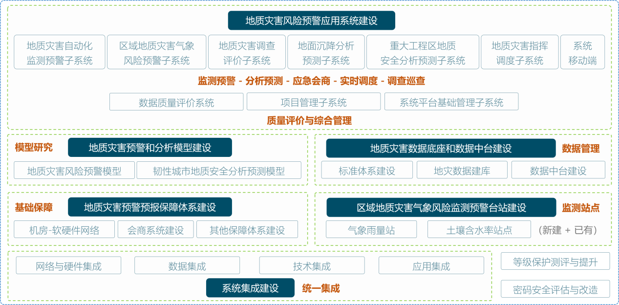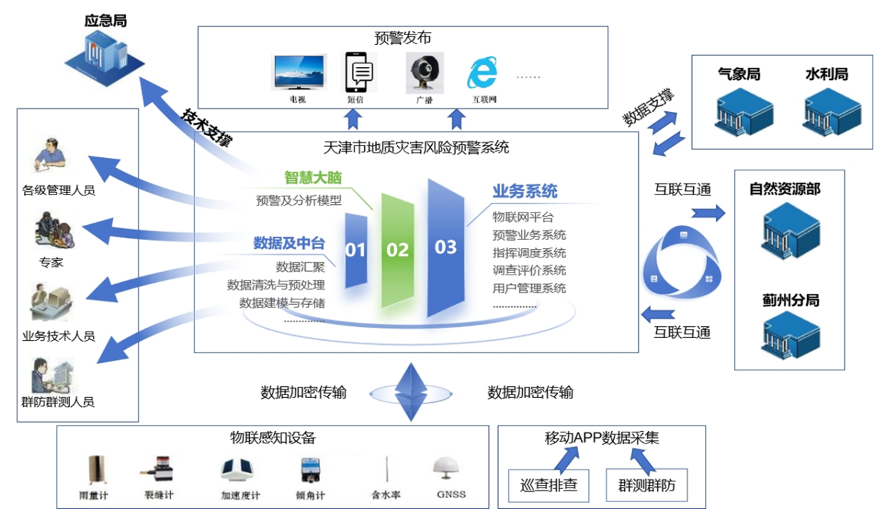 為深入貫徹落實習近平總書記關于防災工作提出的“人民至上、生命至上”“兩個堅持”“三個轉變”重要指示精神,國家相繼出臺《地質災害防治條例》、《國務院關于加強地質災害防治工作的決定》、《全國地質災害防治“十四五”規(guī)劃》等多項政策和規(guī)劃,強調要依托地質災害信息系統(tǒng),建設分布式網絡基礎設施,健全完善“國家-省-市-縣”四級地質災害數(shù)據(jù)庫,建設多層級、多部門互聯(lián)互通的全國地質災害信息平臺。天津市積極貫徹落實中央指示精神,制定《天津市地質災害防治規(guī)劃(2021-2025年)》,并明確提出,進一步提升地質災害風險管控能力,實現(xiàn)地質災害智慧化風險管控。